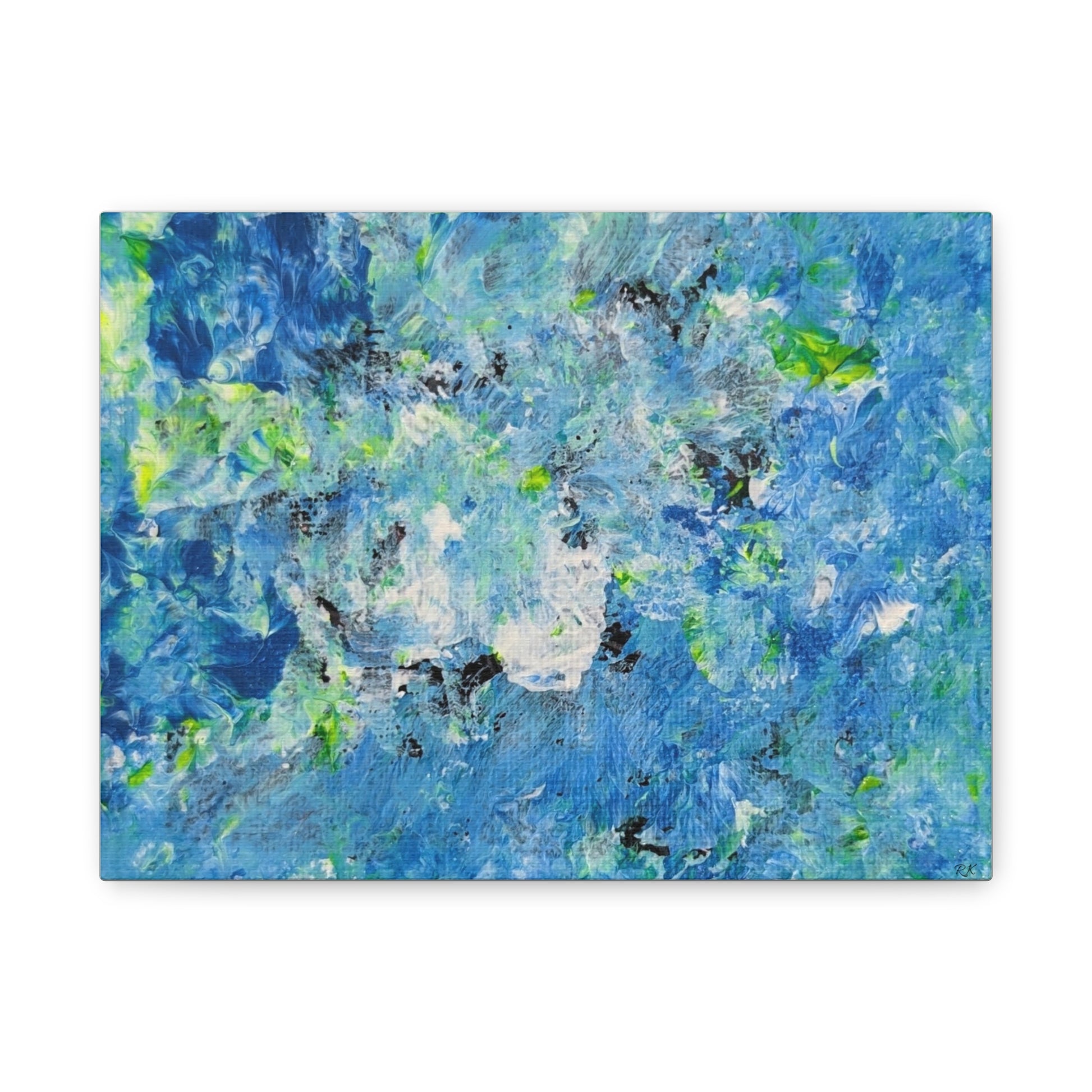 "The Field of Blue," a unique abstract creation by Its A Art Vibe, rendered onto canvas, embodies a serene and artistic ambiance that will permeate your space with tranquility.